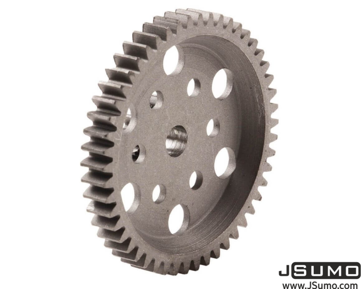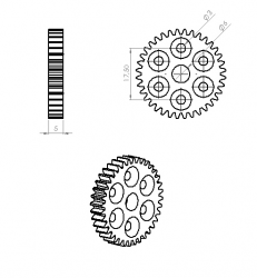 Weight: 25.5 grams Center Hole Diameter: 5 mm If you're considering a sumo robot, minimizing the rotating mass should be one of your goals. And every gram of savings in the overall weight of the robot is also of great importance. These ultra-light gears will give you the lightness you need. It is lightened by additional holes in the gear and cnc machined clearance at the rear.