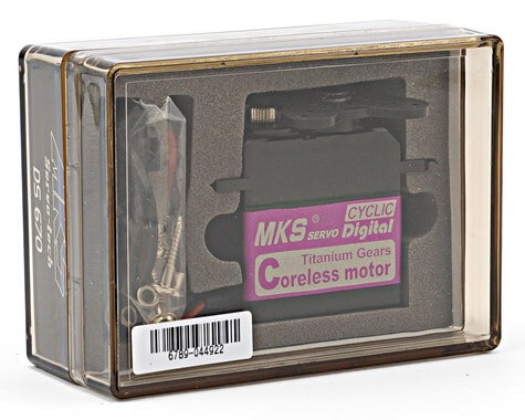 Model: MKS Servos DS670 Dead Band: 0.0008ms (Default) Control System: +Pulse Width Control Working Frequence: 1520μs / 333hz (Caution! It is Digital servo motor, Not Analog 50hz Servo Motor) (RX) Required Pulse: 3.0 ~ 5 Volt Peak to Peak Square Wave Operating Voltage: 4.8 ~ 6 V DC Volts Operating Temperature Range: -10 to + 60 Degree C Operating Speed (4.8v): 0.111 sec/60° degrees at no load Operating Speed (6v) 0.089 sec/60° degrees at no load Stall Torque (4.8v): 174.73 oz/in (12.58 kg-cm) Stall Torque (6v): 218.35 oz/in (15.72 kg-cm) Motor Type: Coreless Motor Potentiometer Drive: Indirect Drive Driver Type: FET Bearing Type: Dual Ball Bearings Gear Type: Titanium Gears Case Material: Aluminum, Bottom cap is plastic. Programmable: NO Connector Wire Length: 24.0cm (9.4 inch) Dimensions: 40x20x40mm Weight: 75 grams (2.64 oz) What JSumo Liked about This servo motor?