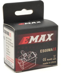 Model: Emax Servos ES08MAII Micro Servo Control System: PPM Working Frequence: 1520μs / 50hz (RX) Required Pulse: 3.0 ~ 5 Volt Peak to Peak Square Wave Operating Voltage: 4.8 ~ 6 V DC Volts Operating Speed (4.8v): 0.12 Sec/60 Degrees Operating Speed (6v) 0.10 Sec/60 Degrees Stall Torque (4.8v): 21 oz/in (1.5kg/cm) Stall Torque (6v): 25.2 oz/in (1.8kg/cm) Motor Type: Brushed DC Motor Gear Type: Metal Brass Gears Case Material: Plastic Programmable: NO Connector Wire Length: 24.0cm (9.4 inch) Dimensions: 23 x 11.5 x 24mm Weight: 12 grams What JSumo liked about This servo motor?