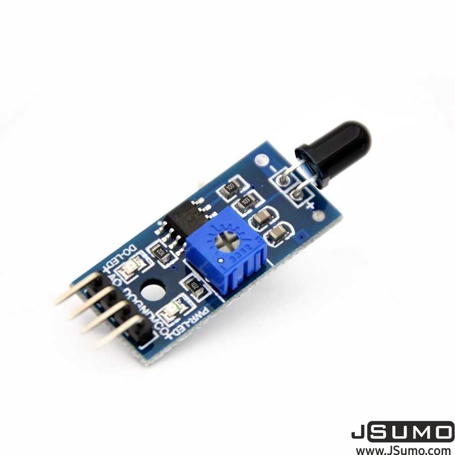 It has an IR receiver on it. It can be used as a fire detection sensor in fire extinguishing robots. Sensitivity can be adjusted with the trimpot on it and both analog and digital outputs can be obtained. You can use female-female or female-male jumper cable for easy prototyping of the product.